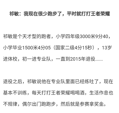 然而就是这种不怎么跑步还喜欢玩王者荣耀的大神,每个月的跑量也有400左右,听起来像个段子!祁敏参加了2016年的北马,上一次参加北马是2012年,他说只是想去玩玩,没有争取,从F区出发,夹在人群里穿梭,最终跑了240,跑得有些懵。今年他参加了清远马拉松,不知怎么就从黑人选手中蹿出,后面一直没看到对手,最终225完赛,拿了冠军,这一次同样跑得有些懵。