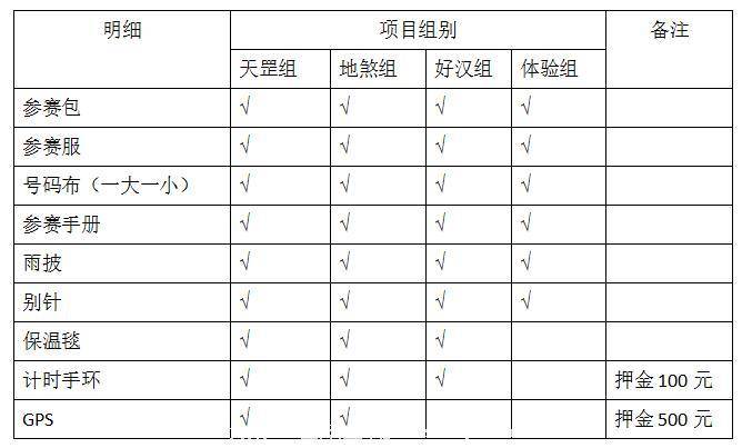 2、天罡组和地煞组需缴纳计时手环和GPS押金,总共600元;